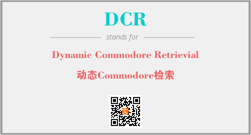 上述内容是“Dynamic Commodore Retrievial”作为“DCR”的缩写,解释为“动态Commodore检索”时的信息,以及英文缩略词DCR所代表的英文单词,其对应的中文拼音、详细解释以及在英文中的流行度和相关分类、应用领域及应用示例等。