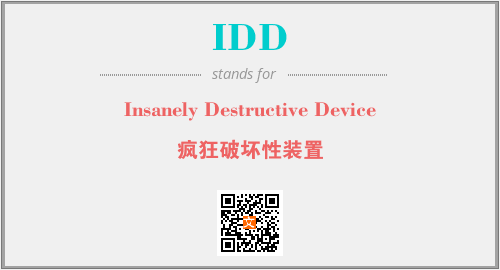 上述内容是“Insanely Destructive Device”作为“IDD”的缩写,解释为“疯狂破坏性装置”时的信息,以及英文缩略词IDD所代表的英文单词,其对应的中文拼音、详细解释以及在英文中的流行度和相关分类、应用领域及应用示例等。