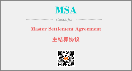 上述内容是“Master Settlement Agreement”作为“MSA”的缩写,解释为“主结算协议”时的信息,以及英文缩略词MSA所代表的英文单词,其对应的中文拼音、详细解释以及在英文中的流行度和相关分类、应用领域及应用示例等。