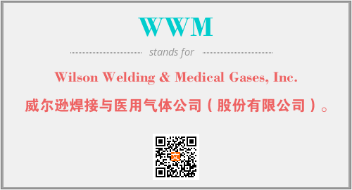 上述内容是“Wilson Welding & Medical Gases, Inc.”作为“WWM”的缩写,解释为“威尔逊焊接与医用气体公司(股份有限公司)。”时的信息,以及英文缩略词WWM所代表的英文单词,其对应的中文拼音、详细解释以及在英文中的流行度和相关分类、应用领域及应用示例等。