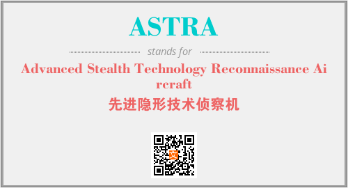 上述内容是“Advanced Stealth Technology Reconnaissance Aircraft”作为“ASTRA”的缩写,解释为“先进隐形技术侦察机”时的信息,以及英文缩略词ASTRA所代表的英文单词,其对应的中文拼音、详细解释以及在英文中的流行度和相关分类、应用领域及应用示例等。