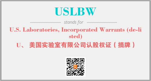 上述内容是“U.S. Laboratories, Incorporated Warrants (de-listed)”作为“USLBW”的缩写,解释为“U、 美国实验室有限公司认股权证(摘牌)”时的信息,以及英文缩略词USLBW所代表的英文单词,其对应的中文拼音、详细解释以及在英文中的流行度和相关分类、应用领域及应用示例等。
