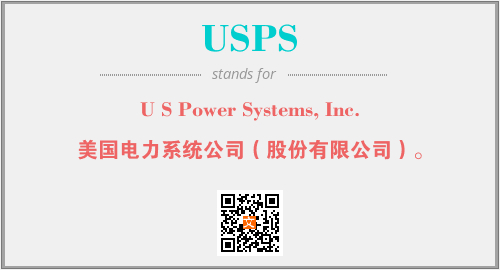 上述内容是“U S Power Systems, Inc.”作为“USPS”的缩写,解释为“美国电力系统公司(股份有限公司)。”时的信息,以及英文缩略词USPS所代表的英文单词,其对应的中文拼音、详细解释以及在英文中的流行度和相关分类、应用领域及应用示例等。