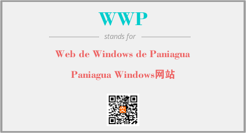 上述内容是“Web de Windows de Paniagua”作为“WWP”的缩写,解释为“Paniagua Windows网站”时的信息,以及英文缩略词WWP所代表的英文单词,其对应的中文拼音、详细解释以及在英文中的流行度和相关分类、应用领域及应用示例等。