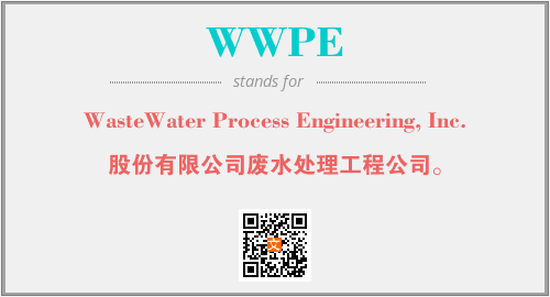 上述内容是“WasteWater Process Engineering, Inc.”作为“WWPE”的缩写,解释为“股份有限公司废水处理工程公司。”时的信息,以及英文缩略词WWPE所代表的英文单词,其对应的中文拼音、详细解释以及在英文中的流行度和相关分类、应用领域及应用示例等。
