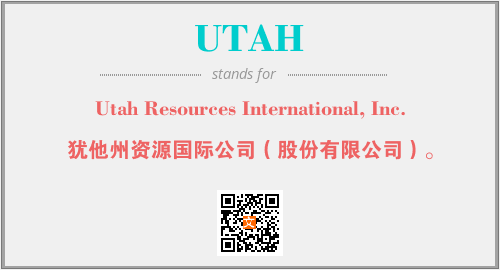 上述内容是“Utah Resources International, Inc.”作为“UTAH”的缩写,解释为“犹他州资源国际公司(股份有限公司)。”时的信息,以及英文缩略词UTAH所代表的英文单词,其对应的中文拼音、详细解释以及在英文中的流行度和相关分类、应用领域及应用示例等。