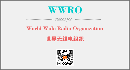 上述内容是“World Wide Radio Organization”作为“WWRO”的缩写,解释为“世界无线电组织”时的信息,以及英文缩略词WWRO所代表的英文单词,其对应的中文拼音、详细解释以及在英文中的流行度和相关分类、应用领域及应用示例等。