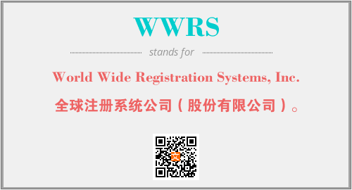 上述内容是“World Wide Registration Systems, Inc.”作为“WWRS”的缩写,解释为“全球注册系统公司(股份有限公司)。”时的信息,以及英文缩略词WWRS所代表的英文单词,其对应的中文拼音、详细解释以及在英文中的流行度和相关分类、应用领域及应用示例等。