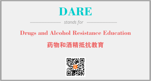上述内容是“Drugs and Alcohol Resistance Education”作为“DARE”的缩写,解释为“药物和酒精抵抗教育”时的信息,以及英文缩略词DARE所代表的英文单词,其对应的中文拼音、详细解释以及在英文中的流行度和相关分类、应用领域及应用示例等。