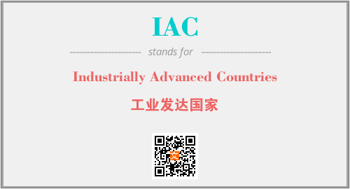 上述内容是“Industrially Advanced Countries”作为“IAC”的缩写,解释为“工业发达国家”时的信息,以及英文缩略词IAC所代表的英文单词,其对应的中文拼音、详细解释以及在英文中的流行度和相关分类、应用领域及应用示例等。