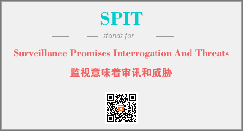 英文缩略词“SPIT”经常作为“Surveillance Promises Interrogation And Threats”的英文缩写来使用,中文表示:“监视意味着审讯和威胁”。本文将详细介绍英文缩写词SPIT所代表英文单词,其对应的中文拼音、详细解释以及在英语中的流行度。此外,还有关于缩略词SPIT的分类、应用领域及相关应用示例等。