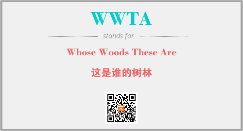以上为Whose Woods These Are英文缩略词WWTA的中文解释,以及该英文缩写在英语的流行度、分类和应用领域方面的信息。