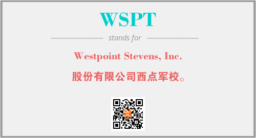 上述内容是“Westpoint Stevens, Inc.”作为“WSPT”的缩写,解释为“股份有限公司西点军校。”时的信息,以及英文缩略词WSPT所代表的英文单词,其对应的中文拼音、详细解释以及在英文中的流行度和相关分类、应用领域及应用示例等。