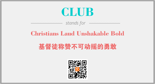 上述内容是“Christians Laud Unshakable Bold”作为“CLUB”的缩写,解释为“基督徒称赞不可动摇的勇敢”时的信息,以及英文缩略词CLUB所代表的英文单词,其对应的中文拼音、详细解释以及在英文中的流行度和相关分类、应用领域及应用示例等。