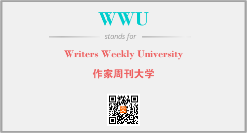 英文缩略词“WWU”经常作为“Writers Weekly University”的英文缩写来使用,中文表示:“作家周刊大学”。本文将详细介绍英文缩写词WWU所代表英文单词,其对应的中文拼音、详细解释以及在英语中的流行度。此外,还有关于缩略词WWU的分类、应用领域及相关应用示例等。