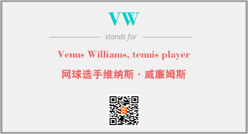 英文缩略词“VW”经常作为“Venus Williams, tennis player”的英文缩写来使用,中文表示:“网球选手维纳斯·威廉姆斯”。本文将详细介绍英文缩写词VW所代表英文单词,其对应的中文拼音、详细解释以及在英语中的流行度。此外,还有关于缩略词VW的分类、应用领域及相关应用示例等。