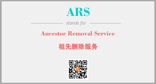 英文缩略词“ARS”经常作为“Ancestor Removal Service”的英文缩写来使用,中文表示:“祖先删除服务”。本文将详细介绍英文缩写词ARS所代表英文单词,其对应的中文拼音、详细解释以及在英语中的流行度。此外,还有关于缩略词ARS的分类、应用领域及相关应用示例等。