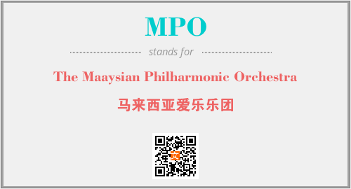 英文缩略词“MPO”经常作为“The Maaysian Philharmonic Orchestra”的英文缩写来使用,中文表示:“马来西亚爱乐乐团”。本文将详细介绍英文缩写词MPO所代表英文单词,其对应的中文拼音、详细解释以及在英语中的流行度。此外,还有关于缩略词MPO的分类、应用领域及相关应用示例等。