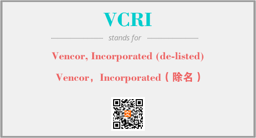 上述内容是“Vencor, Incorporated (de-listed)”作为“VCRI”的缩写,解释为“Vencor,Incorporated(除名)”时的信息,以及英文缩略词VCRI所代表的英文单词,其对应的中文拼音、详细解释以及在英文中的流行度和相关分类、应用领域及应用示例等。
