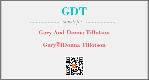 以上为Gary And Donna Tillotson英文缩略词GDT的中文解释,以及该英文缩写在英语的流行度、分类和应用领域方面的信息。