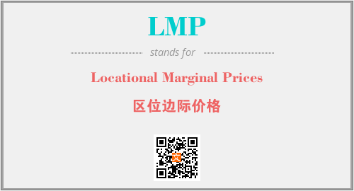 英文缩略词“LMP”经常作为“Locational Marginal Prices”的英文缩写来使用,中文表示:“区位边际价格”。本文将详细介绍英文缩写词LMP所代表英文单词,其对应的中文拼音、详细解释以及在英语中的流行度。此外,还有关于缩略词LMP的分类、应用领域及相关应用示例等。