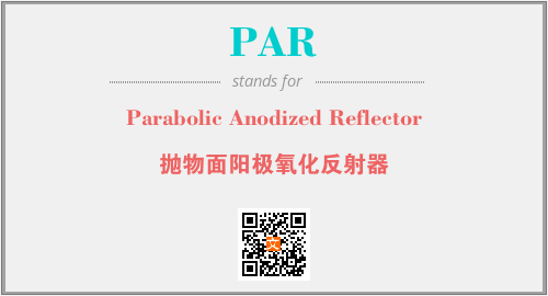 上述内容是“Parabolic Anodized Reflector”作为“PAR”的缩写,解释为“抛物面阳极氧化反射器”时的信息,以及英文缩略词PAR所代表的英文单词,其对应的中文拼音、详细解释以及在英文中的流行度和相关分类、应用领域及应用示例等。