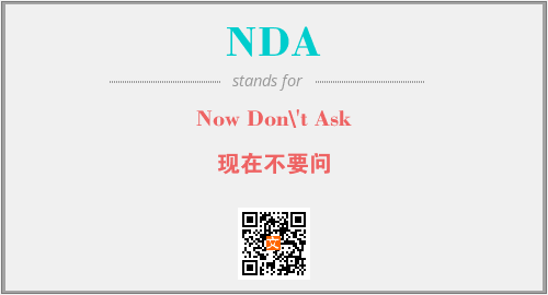 英文缩略词“NDA”经常作为“Now Don\'t Ask”的英文缩写来使用,中文表示:“现在不要问”。本文将详细介绍英文缩写词NDA所代表英文单词,其对应的中文拼音、详细解释以及在英语中的流行度。此外,还有关于缩略词NDA的分类、应用领域及相关应用示例等。
