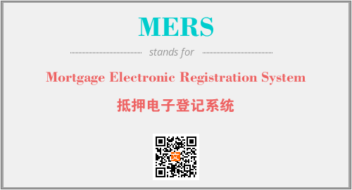 英文缩略词“MERS”经常作为“Mortgage Electronic Registration System”的英文缩写来使用,中文表示:“抵押电子登记系统”。本文将详细介绍英文缩写词MERS所代表英文单词,其对应的中文拼音、详细解释以及在英语中的流行度。此外,还有关于缩略词MERS的分类、应用领域及相关应用示例等。