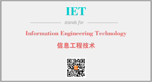上述内容是“Information Engineering Technology”作为“IET”的缩写,解释为“信息工程技术”时的信息,以及英文缩略词IET所代表的英文单词,其对应的中文拼音、详细解释以及在英文中的流行度和相关分类、应用领域及应用示例等。