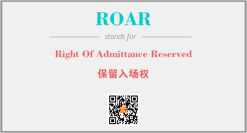 上述内容是“Right Of Admittance Reserved”作为“ROAR”的缩写,解释为“保留入场权”时的信息,以及英文缩略词ROAR所代表的英文单词,其对应的中文拼音、详细解释以及在英文中的流行度和相关分类、应用领域及应用示例等。