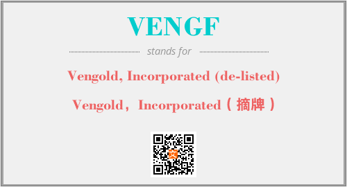 上述内容是“Vengold, Incorporated (de-listed)”作为“VENGF”的缩写,解释为“Vengold,Incorporated(摘牌)”时的信息,以及英文缩略词VENGF所代表的英文单词,其对应的中文拼音、详细解释以及在英文中的流行度和相关分类、应用领域及应用示例等。