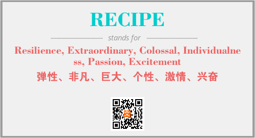 上述内容是“Resilience, Extraordinary, Colossal, Individualness, Passion, Excitement”作为“RECIPE”的缩写,解释为“弹性、非凡、巨大、个性、激情、兴奋”时的信息,以及英文缩略词RECIPE所代表的英文单词,其对应的中文拼音、详细解释以及在英文中的流行度和相关分类、应用领域及应用示例等。