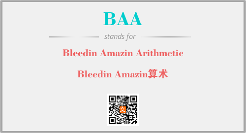以上为Bleedin Amazin Arithmetic英文缩略词BAA的中文解释,以及该英文缩写在英语的流行度、分类和应用领域方面的信息。