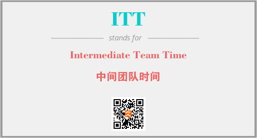 英文缩略词“ITT”经常作为“Intermediate Team Time”的英文缩写来使用,中文表示:“中间团队时间”。本文将详细介绍英文缩写词ITT所代表英文单词,其对应的中文拼音、详细解释以及在英语中的流行度。此外,还有关于缩略词ITT的分类、应用领域及相关应用示例等。