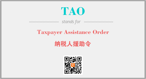 英文缩略词“TAO”经常作为“Taxpayer Assistance Order”的英文缩写来使用,中文表示:“纳税人援助令”。本文将详细介绍英文缩写词TAO所代表英文单词,其对应的中文拼音、详细解释以及在英语中的流行度。此外,还有关于缩略词TAO的分类、应用领域及相关应用示例等。