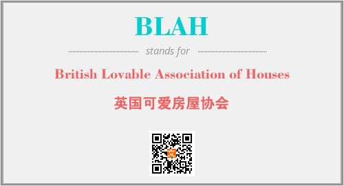 上述内容是“British Lovable Association of Houses”作为“BLAH”的缩写,解释为“英国可爱房屋协会”时的信息,以及英文缩略词BLAH所代表的英文单词,其对应的中文拼音、详细解释以及在英文中的流行度和相关分类、应用领域及应用示例等。