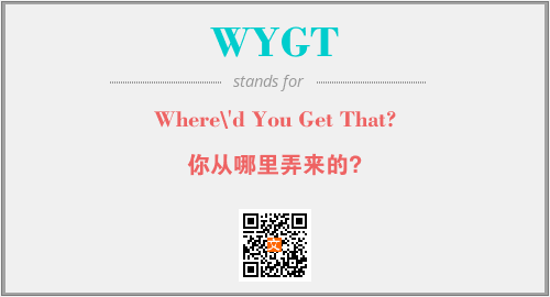 以上为Where\'d You Get That?英文缩略词WYGT的中文解释,以及该英文缩写在英语的流行度、分类和应用领域方面的信息。