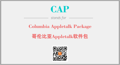 英文缩略词“CAP”经常作为“Columbia Appletalk Package”的英文缩写来使用,中文表示:“哥伦比亚Appletalk软件包”。本文将详细介绍英文缩写词CAP所代表英文单词,其对应的中文拼音、详细解释以及在英语中的流行度。此外,还有关于缩略词CAP的分类、应用领域及相关应用示例等。