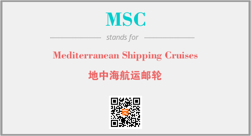 上述内容是“Mediterranean Shipping Cruises”作为“MSC”的缩写,解释为“地中海航运邮轮”时的信息,以及英文缩略词MSC所代表的英文单词,其对应的中文拼音、详细解释以及在英文中的流行度和相关分类、应用领域及应用示例等。