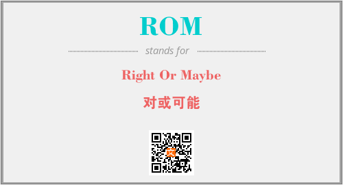 英文缩略词“ROM”经常作为“Right Or Maybe”的英文缩写来使用,中文表示:“对或可能”。本文将详细介绍英文缩写词ROM所代表英文单词,其对应的中文拼音、详细解释以及在英语中的流行度。此外,还有关于缩略词ROM的分类、应用领域及相关应用示例等。
