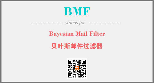 英文缩略词“BMF”经常作为“Bayesian Mail Filter”的英文缩写来使用,中文表示:“贝叶斯邮件过滤器”。本文将详细介绍英文缩写词BMF所代表英文单词,其对应的中文拼音、详细解释以及在英语中的流行度。此外,还有关于缩略词BMF的分类、应用领域及相关应用示例等。