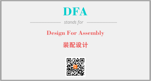 上述内容是“Design For Assembly”作为“DFA”的缩写,解释为“装配设计”时的信息,以及英文缩略词DFA所代表的英文单词,其对应的中文拼音、详细解释以及在英文中的流行度和相关分类、应用领域及应用示例等。
