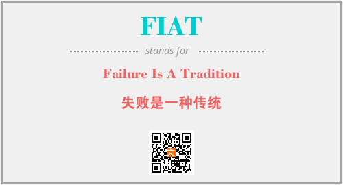 英文缩略词“FIAT”经常作为“Failure Is A Tradition”的英文缩写来使用,中文表示:“失败是一种传统”。本文将详细介绍英文缩写词FIAT所代表英文单词,其对应的中文拼音、详细解释以及在英语中的流行度。此外,还有关于缩略词FIAT的分类、应用领域及相关应用示例等。