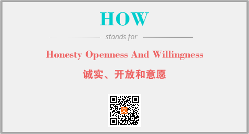 以上为Honesty Openness And Willingness英文缩略词HOW的中文解释,以及该英文缩写在英语的流行度、分类和应用领域方面的信息。