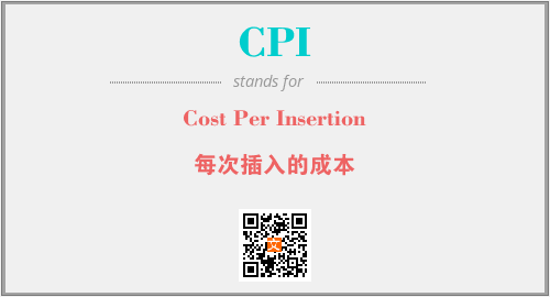 上述内容是“Cost Per Insertion”作为“CPI”的缩写,解释为“每次插入的成本”时的信息,以及英文缩略词CPI所代表的英文单词,其对应的中文拼音、详细解释以及在英文中的流行度和相关分类、应用领域及应用示例等。