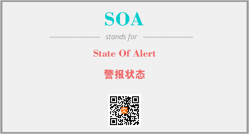 上述内容是“State Of Alert”作为“SOA”的缩写,解释为“警报状态”时的信息,以及英文缩略词SOA所代表的英文单词,其对应的中文拼音、详细解释以及在英文中的流行度和相关分类、应用领域及应用示例等。