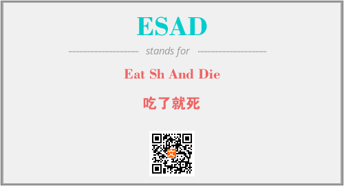 英文缩略词“ESAD”经常作为“Eat Sh And Die”的英文缩写来使用,中文表示:“吃了就死”。本文将详细介绍英文缩写词ESAD所代表英文单词,其对应的中文拼音、详细解释以及在英语中的流行度。此外,还有关于缩略词ESAD的分类、应用领域及相关应用示例等。