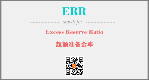 上述内容是“Excess Reserve Ratio”作为“ERR”的缩写,解释为“超额准备金率”时的信息,以及英文缩略词ERR所代表的英文单词,其对应的中文拼音、详细解释以及在英文中的流行度和相关分类、应用领域及应用示例等。