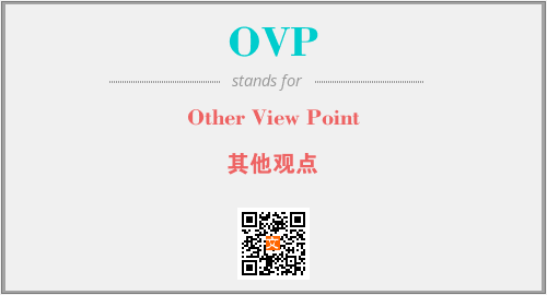 英文缩略词“OVP”经常作为“Other View Point”的英文缩写来使用,中文表示:“其他观点”。本文将详细介绍英文缩写词OVP所代表英文单词,其对应的中文拼音、详细解释以及在英语中的流行度。此外,还有关于缩略词OVP的分类、应用领域及相关应用示例等。