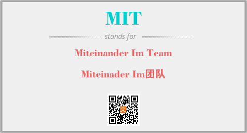 英文缩略词“MIT”经常作为“Miteinander Im Team”的英文缩写来使用,中文表示:“Miteinader Im团队”。本文将详细介绍英文缩写词MIT所代表英文单词,其对应的中文拼音、详细解释以及在英语中的流行度。此外,还有关于缩略词MIT的分类、应用领域及相关应用示例等。